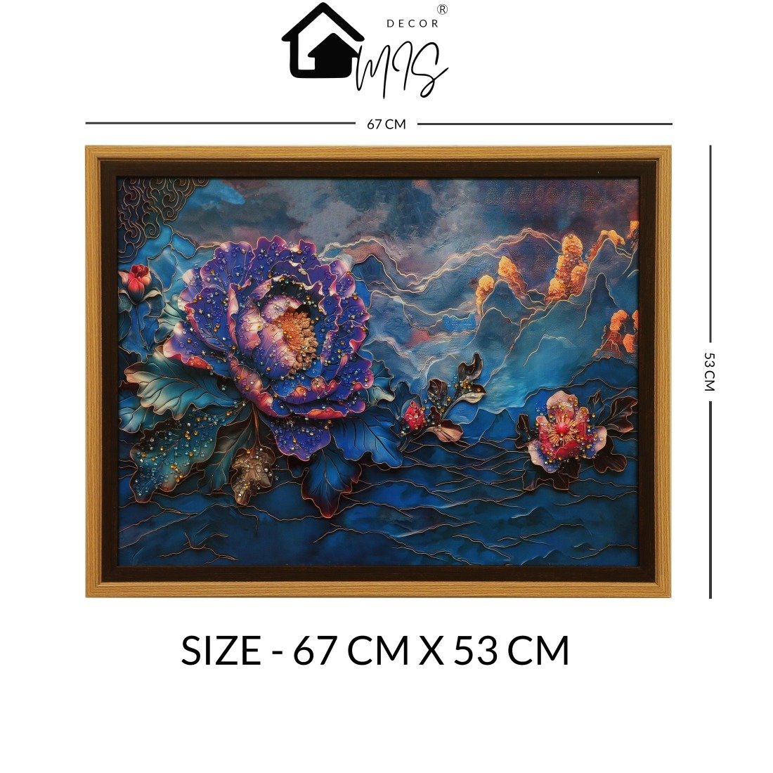 1 Design Elements: Crystal embossed (adds a 3D, premium, shiny effect) Frame with golden detailing (luxurious look) Big size (makes it a centerpiece decor item) 2 Usage: Wall hanging painting Room decoration material Suitable for living room, bedroom, hall, office 3 Type: Wall painting with frame Wall decor painting Wall hanging painting with frame
