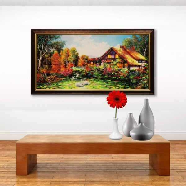 Cottage Garden Resin Painting with Swans