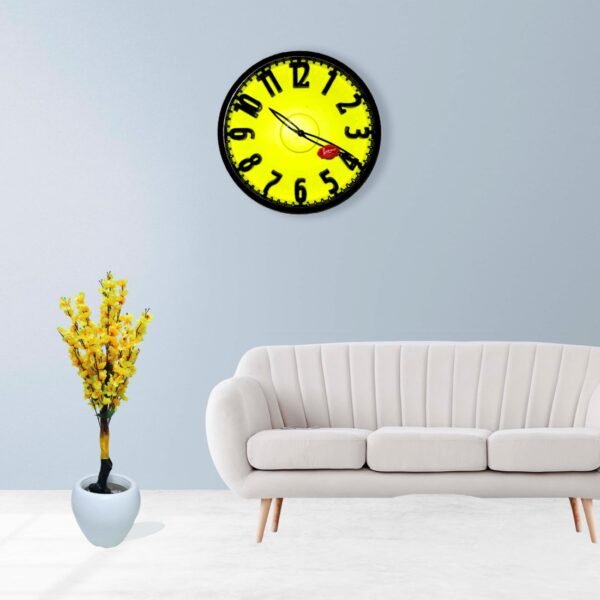 Fluorescent Round Yello Wall Clock with Dome Glass